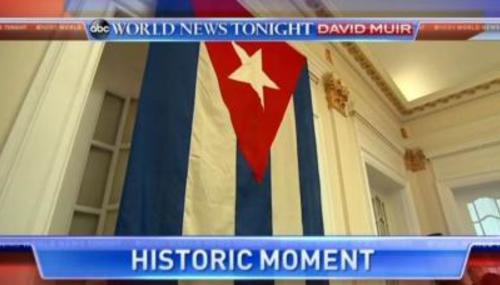 All three networks on Monday thrilled over the "historic" opening of a Cuban embassy in Washington D.C. ABC offered the friendliest coverage to the communist regime, completely avoiding any mention of the country's human rights crimes or of the protests outside the new embassy. Instead, ABC anchor David Muir marveled, "The historic moment. Fifty four years later, the Cuban flag flying in the U.S…
