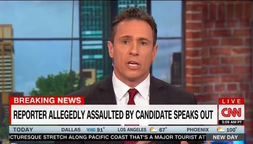 On Thursday's New Day on CNN, Chris Cuomo repeatedly tried to tie the national Republican party to Montana congressional candidate Greg Gianforte assaulting a reporter. After the CNN host unsuccessfully tried to get the reporter in question -- Ben Jacobs of The Guardian -- to make such a link, he then raised the issue in a later segment as he recalled a "ratcheting up of hostility towards the…