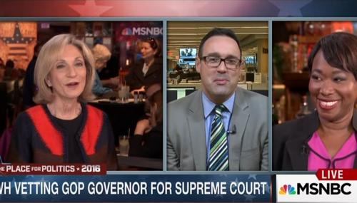 On her 12 p.m. ET hour MSNBC show on Thursday, host Andrea Mitchell was giddy over reports that President Obama was considering Republican Nevada Governor Brian Sandoval to replace the late Antonin Scalia on the Supreme Court: “...the trial balloon, if you will, that came out of the Obama White House, of nominating a Republican to try to put the Republican Senate on notice, and try to back them…
