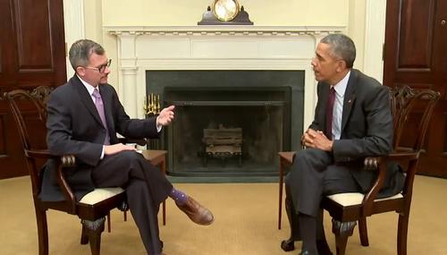 BuzzFeed’s Chris Geidner got a sit-down with President Obama at the White House this past Monday afternoon and, as NBC’s Jimmy Fallon noticed, in waiting for Obama to arrive for the live session he became a bit obsessed with the door to the room.