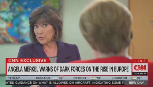 CNN’s Christiane Amanpour praised Angela Merkel on Tuesday, cheering the “courageous, compassionate immigration policy" that has let over one million Muslims into the country. Conversely, she condemned conservative movements, which she described as “dark old demons” and “very dark forces.”