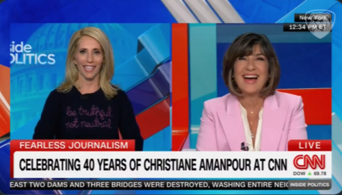 The advocates of aggressive liberal bias have endorsed the Christiane Amanpour slogan "truthful, not neutral." CNN host Dana Bash even wore a shirt on air with the slogan to celebrate Amanpour's 40th anniversary with CNN. They equate "truthful" with liberal and "democracy" with victory for Democrats.