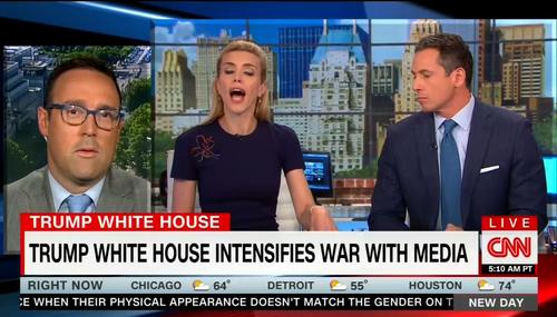 CNN has become a self-serving propaganda mill for journalists the past few months, reaching a new level of shamelessness. Wednesday’s New Day ran the headline, “TRUMP WHITE HOUSE INTENSIFIES WAR WITH MEDIA,” with reporter Clarissa Ward (filling in for co-host Alisyn Camerota) worrying that by labeling the media as fake and such, that the White House is putting the lives of journalists in danger…