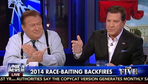 During Thursday’s edition of The Five on the Fox News Channel (FNC), co-host Bob Beckel displayed his middle finger toward fellow panelist Jesse Watters during a discussion about how race-baiting by Democrats in the runup to the 2014 midterm elections backfired.
