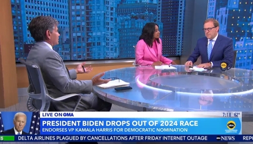Always a loyal foot soldier for the left, ABC’s Good Morning America was ebullient Monday in fluffing Vice President Kamala Harris being handed an “extraordinary moment” as the likely Democratic presidential nominee with “a flood of cash” and “history” on her side now that President Biden has dropped out against “felon” Donald Trump.