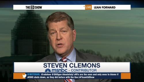 In a classic example of phony political jujitsu, an MSNBC contributor has tried to turn the patriotism issue back against Republicans. Appearing on today's Ed Show, Steve Clemons attacked the "patriotism" of GOP congressional leaders, accusing them of "undermining the security of the nation."