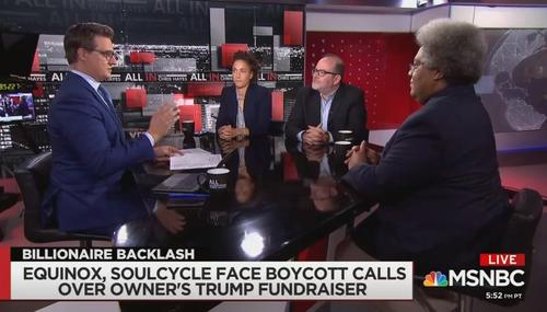 Thursday night’s All In made sure to highlight the blatant bias against anyone who supports Trump and his campaign. Host Chris Hayes and guests tore apart Stephen Ross, the owner of Equinox, for Friday’s Trump fundraiser which has received a torrent criticism from the media and SoulCyclists everywhere.