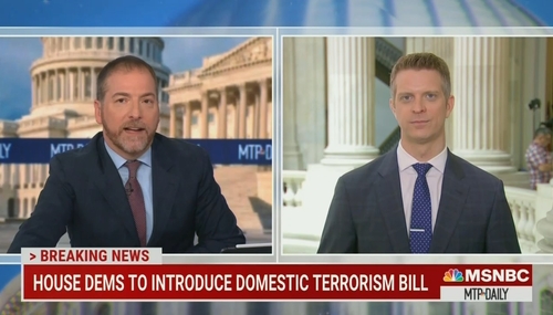 Chuck Todd went off the rails on the Tuesday installment of MTP Daily on MSNBC where he declared that the GOP chickens are “coming home to roost” after years of appeasing white supremacists because they refuse to get onboard with the Democrats’ domestic terrorism bill.
