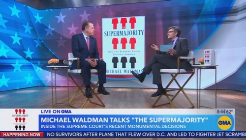Monday on ABC’s Good Morning America, co-host and former Clinton official George Stephanopoulos trotted out far-left author Michael Waldman to tout his new book The Supermajority that doubled as a screed with the thesis that, in Stephanopoulos’s summation, conservative justices are “a threat to democracy” for rulings he believes are counter to a center-left country.