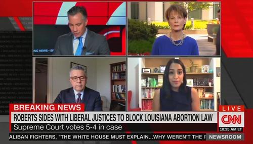 On Monday morning’s CNN Newsroom, host Jim Sciutto brought on political analyst Sabrina Siddiqui, chief legal analyst and national politics reporter Jeffrey Toobin, and Supreme Court analyst Joan Biskupic to celebrate the Supreme Court striking down a Louisiana law regulating abortions. Rejecting the guise of a news network, the panel unabashedly applauded the ruling. Toobin …