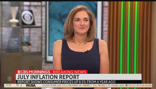 Inflation fell just .6 percent in July and CBS Morning was treating the news like it marked the end of the Great Depression. With gas prices still way above where they were last year and people still paying through the nose for basic necessities, on Wednesday, CBS business analyst Jill Schlesinger joyously proclaimed that inflation had “peaked” and spewed the Big Lie that America was…