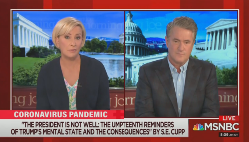 Joe Scarborough and Mika Brzezinski drool over, and quote at great length, S.E. Cupp's column in the New York Daily News, the gist of which is that President Trump is mentally "very sick," and should be removed from office via the 25th Amendment if only that were politically possible.