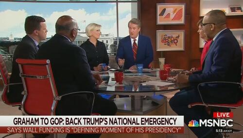 The cast of MSNBC's Morning Joe are not keen on the idea of President Trump using emergency powers to build a wall on the border. It is nice that they are standing up for Constitutional notions of checks and balances and separation of powers, because that has not always been the case with the MSNBC morning show.