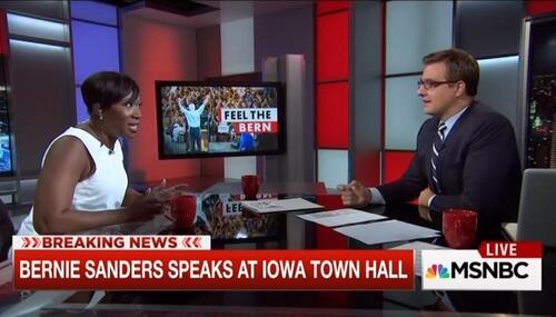 During Thursday’s All In on MSNBC, what began as a discussion of socialist Bernie Sanders between host Chris Hayes and national correspondent Joy Reid suddenly morphed into the pair gushing over how some supporters of Hillary Clinton “are devoted diehards” that “we tend to underestimate” in the media.