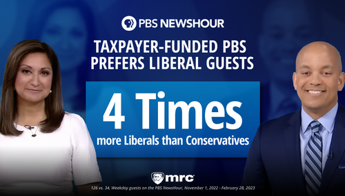 PBS, established in 1969, has an outdated reputation for delivering a polite, objective take on the news of the day, exemplified by its flagship evening news program, now called the PBS NewsHour. But a new Media Research Center study deflates that outdated assumption, tracking and labeling every guest that appeared on the NewsHour over a four-month period, November 2022…