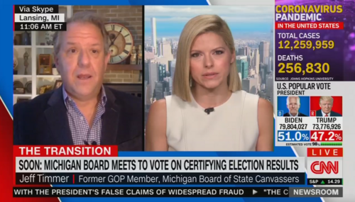 On Monday, CNN Newsroom host Kate Bolduan brought on a member of the Lincoln Project who insisted that it was “unlawful” for any member of Michigan’s canvassing board to delay certifying that state’s election results. Jeff Timmer, whom Bolduan identified as a “senior advisor” for the disgraced organization, advocated that the American Bar Association either sanction or outright revoke…