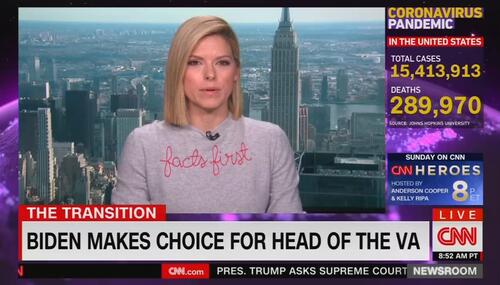 The slogan "Facts First" at CNN has always been a bit of a joke, since anti-Trump and anti-Republican opinions usually are more common than calm statements of fact. CNN Newsroom host Kate Bolduan delighted the left by wearing a cheesy "Facts First" sweater on the air on Thursday morning. It retails for a whopping $380.