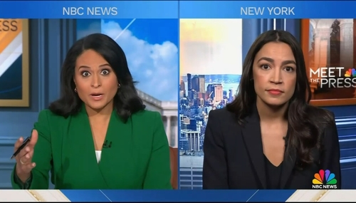 On Sunday's Meet the Press, host Kristen Welker interviewed radical-left Rep. Alexandria Ocasio-Cortez and at the end, gently questioned whether it's fair for her colleague Rashida Tlaib and other leftist friends of hers to accuse Biden of genocide.