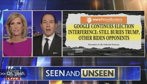 Ingraham Angle Highlights MRC Research on Google Election Interference