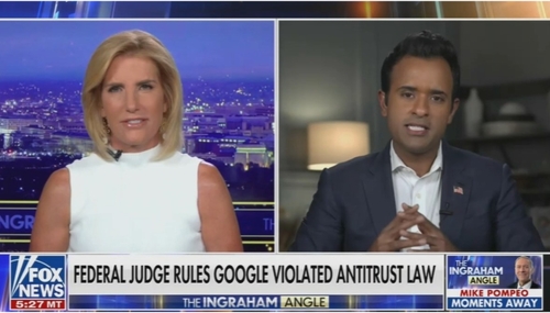 The Ingraham Angle on Wednesday featured MRC Free Speech America’s exclusive research exposing Google’s election-interfering search engine bias.
