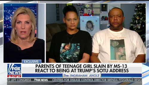 Last night on FNC’s The Ingraham Angle, host Laura Ingraham interviewed parents of a teenage girl who was killed by the gang MS-13 in 2016, and who were honored by President Trump at the State of the Union, January 30. The radio and television host asked the couple about their reaction to Democrats not standing for their daughter during the speech, and MSNBC’s Joy Reid’s dismissive response to…