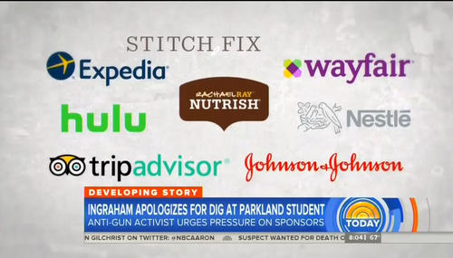 In the last 24 hours, several companies have announced they will no longer advertise on FNC’s Ingraham Angle, in response to a boycott spearheaded by Parkland high school student David Hogg. Yet many of the same national brands which now refuse to associate themselves with host Laura Ingraham have advertised just this week on controversial left-wing programs.