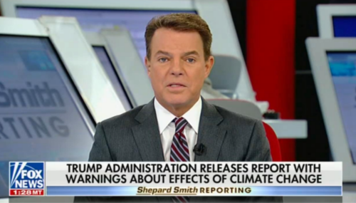 Every now and then, anchor Shepard Smith seems to feel the need to distance himself from most of the other on-air personalities on the Fox News Channel, and Monday afternoon saw the latest incident. Unfortunately, this time Smith had the opportunity served up to him on a silver platter by the Trump Administration, which released a grim new report from 13 federal agencies on the Friday start to…