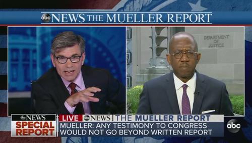 After Special Counsel Robert Mueller gave his final word on the completed Mueller report Wednesday morning, all three networks broke in with live coverage demanding that it was now Democrats' chance to impeach Trump. ABC was the most heavy-handed in their coverage, with anchor George Stephanopoulos bringing up the impeachment topic at least eight times in a thirteen minute segment.
