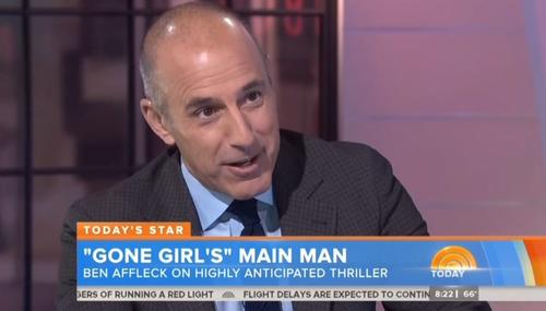In an interview with Ben Affleck on Monday's NBC Today, co-host Matt Lauer observed that the actor's new murder mystery thriller Gone Girl was "a little hostile to the institution of the media." Affleck agreed but reassured Lauer: "Yeah, it's not media broadly. It's not you guys or The New York Times or even the news. It's about that stripe of media that's the sort of the cable, 24-hour, 'Who…