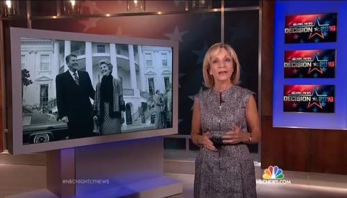 Closing out Wednesday’s NBC Nightly News, liberal correspondent and MSNBC host Andrea Mitchell played the role of Ronald Reagan biographer in using the late former president to attack the current Republican presidential field and ruled that Reagan’s “message was infused with sunny optimism” and represents “the flip side of today's angry rhetoric.”