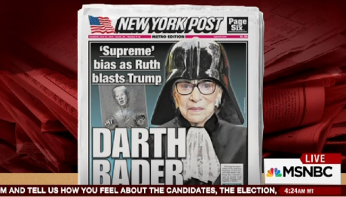 On Thursday, the general consensus around the table on Morning Joe was that Justice Ginsburg’s recent comments on Republican presidential nominee Donald Trump were inappropriate and misplaced. While host Joe Scarborough joked that Ginsburg’s comments were a symptom of her “miss[ing] Scalia” he reiterated the reality that her actions walk the thin line of “ethical violations.” Similar to MSNBC’s…