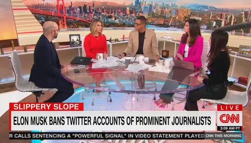 Friday’s CNN This Morning reacted to Thursday night’s suspensions with none of the nuance that a discussion about doxing and flight tracking information should have. Instead, it was claimed that non-democratic governments around the world will use the incident to clamp down on free speech in their own countries.