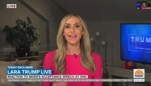 On Wednesday morning, Today co-host Savannah Guthrie threw a series of softballs at Jill Biden. But on Saturday's Today, NBC was all attack questions with Lara Trump, Eric Trump’s wife and a Trump campaign adviser. Peter Alexander asked how Trump could attack Joe Biden's acceptance speech when "even Fox News described it as 'enormously effective.'"