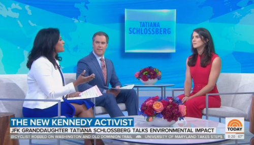 On Tuesday, the hosts of NBC’s Today show fawned over New York Times writer Tatiana Schlossberg, granddaughter of President Kennedy, authoring “a new book that explores the role we all play in climate change.” While the headline on screen throughout the segment labeled Schlossberg an “activist,” the climate crusader was repeatedly referred to as a “journalist” throughout the softball exchange.
