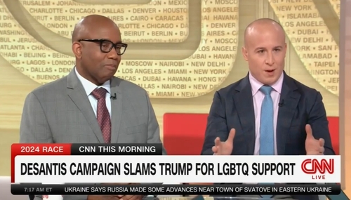 When it comes to the Republican half of the presidential race, CNN is going to hate them all. On Monday's CNN This Morning, the anchors were outraged at a eye-grabbing ad shared by the DeSantis War Room twitter account. It asserted Donald Trump was pro-LGBTQ and then showed scare headlines of how DeSantis outraged the gay groups.
