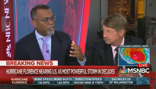 Eager to politicize the upcoming natural disaster of Hurricane Florence, on Wednesday, MSNBC anchor Stephanie Ruhle and her panel of guests hammered President Trump for defending the federal government response to Hurricane Maria in 2017 and debated whether the commander-in-chief was “evil” or just a self-centered “toddler.”