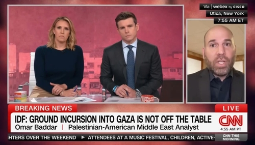 On Monday's CNN This Morning, the show gave Middle East analyst and pro-Palestinian advocate Omar Baddar a platform to make unfettered accusations against Israel and the Israel Defence Force, falsely suggesting they were engaged in committing "daily war crimes" and the "mass indiscriminate bombing of civilian areas," as he blamed "injustice" perpetrated by Israel for the weekend…