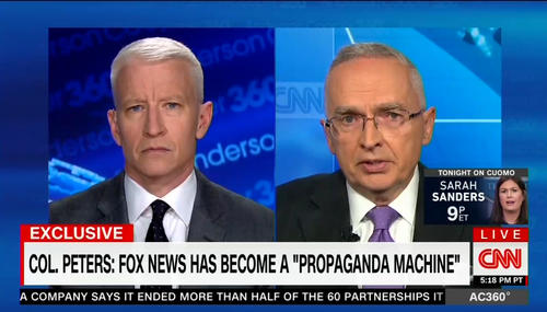 Ralph Peters, retired Army Lieutenant Colonel and former Fox News Analyst, appeared on CNN's Anderson Cooper 360 on Wednesday night. His first TV appearance since leaving Fox showed he had nothing but ill will toward his former network.