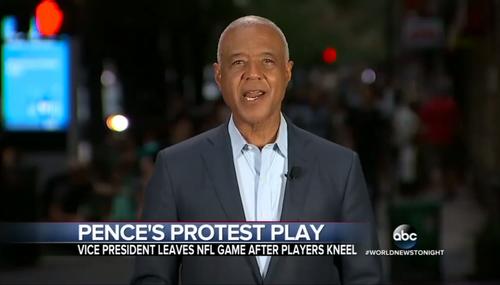 On Sunday evening, ABC's World News Tonight and the NBC Nightly News both reacted to Vice President Mike Pence walking out of an NFL game in Indianapolis by dismissing his reaction as a "stunt," with ABC fretting that he was "reigniting the fury." It did not seem to occur to either network that, when several of the '49ers players sparked the move by kneeling during the National Anthem, this…
