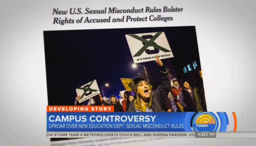 Eager to attack a potential new Trump administration policy dealing with sexual assault on college campuses, on Thursday, NBC’s Today show actually ignored its own reporting on the litany of problems with existing Obama-era policy. Instead, the story feared that Trump’s Department of Education was getting ready to silence sexual assault victims.