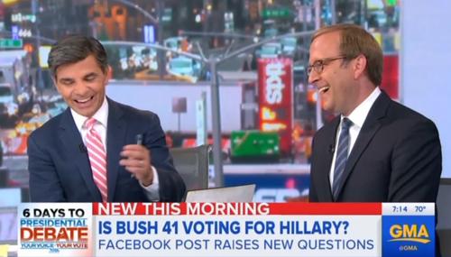 On Tuesday, all three network morning shows ran with an unconfirmed claim from prominent Democrat Kathleen Kennedy Townsend that former President George H.W. Bush supposedly told her he was voting for Hillary Clinton. On NBC’s Today, co-host Savannah Guthrie excitedly told viewers: “Is a Bush ready to back a Clinton? Yes, according to a Kennedy...”