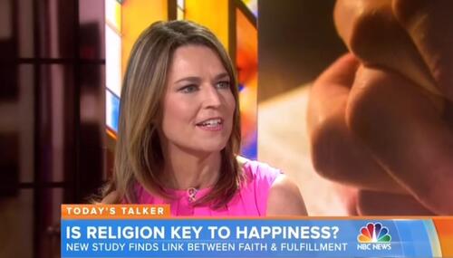 On Monday, NBC’s Today was the only network morning show to cover a new study showing a strong link between religious faith and lasting happiness. Co-host Savannah Guthrie informed viewers: “According to a new study in the American Journal of Epidemiology, joining a religious group does more for someone’s sustained happiness than other forms of social participation.”