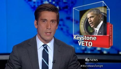 While all three of the major broadcast networks on Tuesday night covered President Barack Obama's veto of the bill passed by Congress approving construction of the Keystone XL oil pipeline, ABC, CBS and NBC failed to mention Obama's veto came despite a majority of Americans supporting the pipeline. Total coverage amounted to one minute and six seconds.