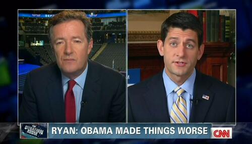 Economic growth grew at an incredibly sluggish 1.3 percent in the second quarter, revised down from 1.7 percent. According to business writer Jim Pethokoukis, this is "dangerously slow." However, NBC skipped the bad news for Barack Obama entirely. ABC allowed it a mere 21 seconds. CBS was the only network to allow the story a full report.