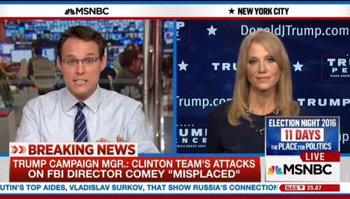 Trump campaign manager Kellyanne Conway naturally took to the cable news airwaves on Friday afternoon to comment on the bombshell news concerning new details the FBI will investigate regarding Hillary Clinton’s e-mail server and on MSNBC, she was pressured to withdraw her candidate’s insistence that the “system” is rigged to benefit Clinton.