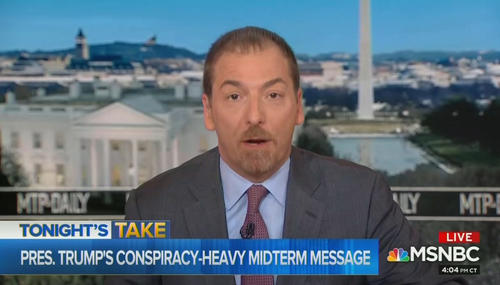 Following what’s become a persistent narrative from the liberal media, Chuck Todd declared on Friday’s MTP Daily that the midterm message put forth by President Trump (and, by extension, the GOP) has been “a heavy dose of a bit of fear-mongering, conspiracy theories and even some mob-style antics.” Ah yes, so Todd is going to insinuate that Trump’s GOP are the real mob and not the left.
