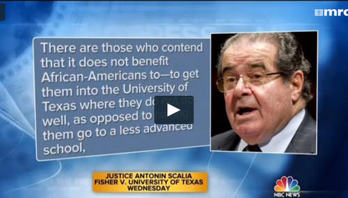 Seemingly unable to tell the difference between a man who affirmatively asserted racist assumptions about the physical abilities of a whole race and a man doing his job by pressing lawyers about a contention in a brief, Meet the Press moderator Chuck Todd smeared Supreme Court Justice Antonin Scalia: “I couldn’t help but think of Al Campanis on Nightline.” Ted Koppel, a panelist on Sunday’s show…