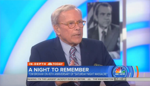 On Tuesday, after concluding a full report for NBC’s Today show marking 50 years since the election of Richard Nixon, Senior Correspondent Tom Brokaw expressed his hope that the country, and particularly President Trump, would be “learning” a lesson from the White House scandal.