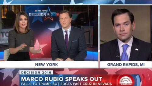 In back-to-back interviews on Wednesday’s NBC Today, hosts Savannah Guthrie and Willie Geist repeatedly urged Republican presidential candidates Marco Rubio and Donald Trump to attack each other. Talking to Rubio first, Guthrie pleaded: “You've got you and Ted Cruz and some of the other candidates fighting each other, and Trump sailing to victory. A lot of Republicans asking this morning, why not…