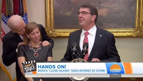 All three morning shows on Wednesday covered the latest example of Joe Biden's awkward, close talking with women in public. However, the hosts of CBS This Morning went out of their way to excuse the Vice President's caressing touch and whispering into the ears of the new Secretary of Defense's wife.